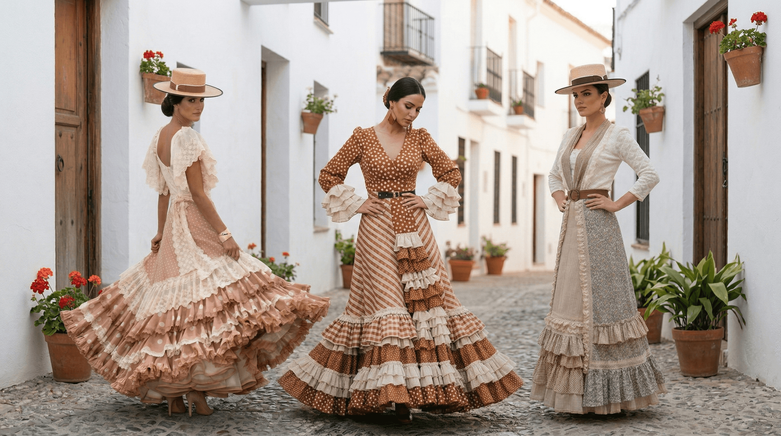 Tonos tierra y estampados con alma: Inspirados en los paisajes que nos regalan los caminos de romería, los tonos arena, terracota y verdes se mezclan con estampados florales que evocan la naturaleza en su máximo esplendor.